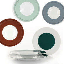 Il servizio proposto è un 18 pezzi, 6 posti tavola ( piatto piano, piatto fondo e piatto dessert ) in 6 differenti colori. Avrete così un'apparecchiatura multicolore personale e ricercata.