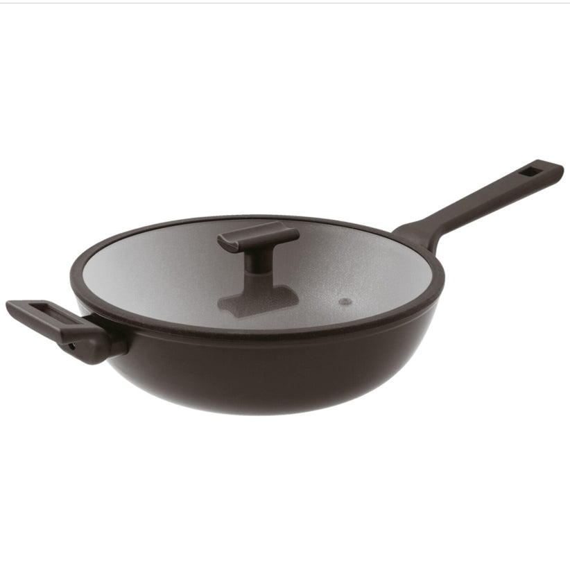 The 30 cm Wok is complete with lid. It's perfect to sauté vegetables and prepare tasty condiments.